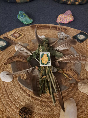 Komm zum Urmutteraltar und ziehe, wenn du magst eine Urmütter-Karte. Diese Karte kann dir einen Hinweis geben, in welche Richtung die Meditation gehen könnte und ob etwas oder was geklärt werden möchte.